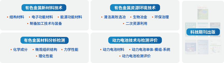 堅持“有色金屬行業(yè)科技服務,高新技術產(chǎn)業(yè)培育發(fā)展”的總體定位,不斷為有色金屬行業(yè)和下游應用行業(yè)提供新技術、新材料解決方案。